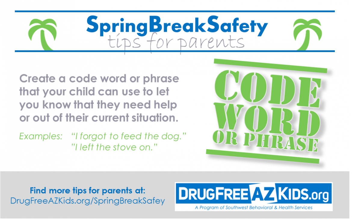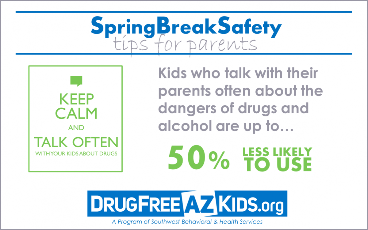 1) Reinforce expectations – As your child moves through their high school years, they may earn more freedom such as later curfews and socializing. However, it’s important to reinforce what specific expectations are in place while they are on spring break. Let them know that drinking and drug use remains unacceptable.