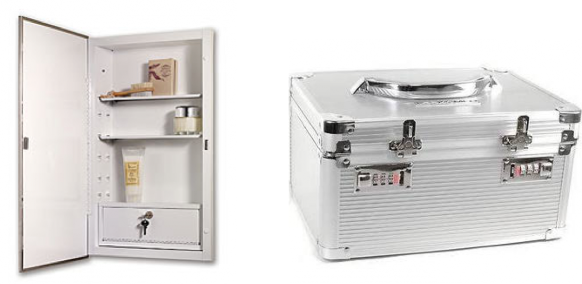 When storing your medication, it is important to keep them out of reach and inaccesible to your kids. Â This could be in a room, cabinet, or drawer that is locked as well as a box that is specifically designed for the safe keeping of medications. Â These can be found at many home organiztion stores or online by seaching for “medicine lock boxes.” Below are a couple examples of these lock boxes.